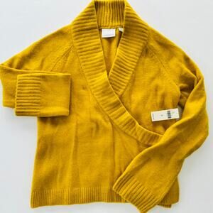 Anthropologie ett-twa Tessa Wrap Sweater Medium Mustard V-Neck Wool Alpaca Knit