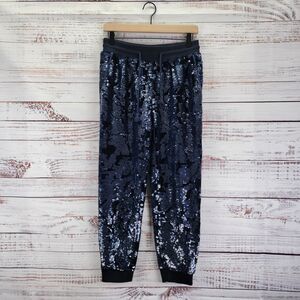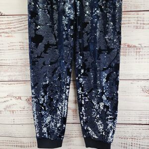 Anthropologie ett:twa Women's Size XS Velvet Sequin Jogger Pants Navy Blue