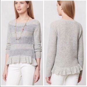 Anthropologie eyelash stripe ruffle hem sweater SZ S
