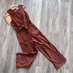 Anthropologie faux suede jumpsuit w/ waist tie cropped women’s size S