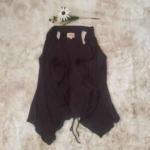 This is a very soft and flowy kimono waterfall style vest bought from Anthropologie. This piece is perfect for layering. Small ruffles along the edges. Like new condition. Size Small.