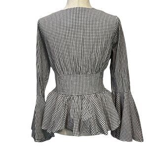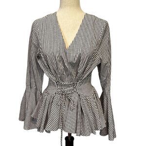 Anthropologie free generation black-and-white blouse- angel sleeves/laced waist