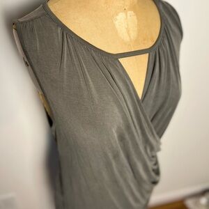 Comfy, yet stylish gray/green stretchy Anthropologie Deletta top size medium.