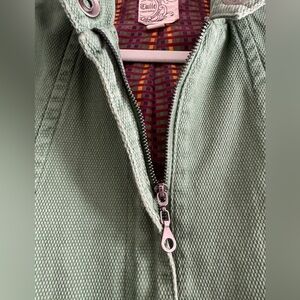 Anthropologie green zip hooded jacket w/cute colorful lining - boho fall size M