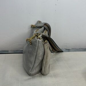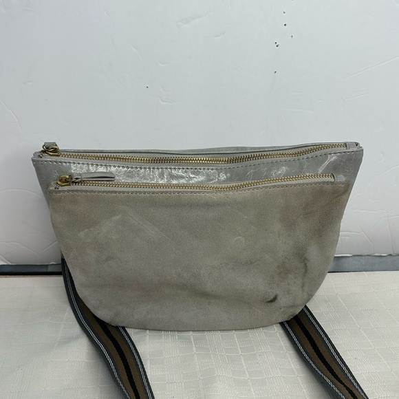 This Anthropologie crossbody bag is the perfect addition to any outfit. Made of high-quality distressed leather and featuring a solid pattern, this medium-sized bag is both stylish and functional. It has two zippers for extra security and an adjustable strap that makes it easy to wear as a crossbody. The bag is in great shape and ready to be used by its new owner it has some small dirty spots and rub marks as shown in photos . Its silver hardware complements the grey leather exterior, making it a versatile accessory that can be paired with any outfit. Whether you're heading to work or out for a night on the town, this Anthropologie crossbody bag is the perfect choice.