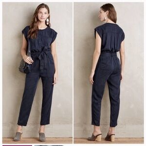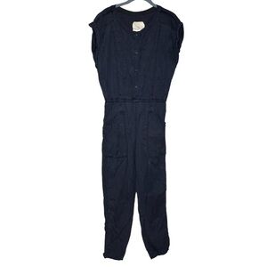 Anthropologie hei hei navy blue utility style short sleeve jumpsuit women’s size small - no belt.