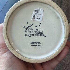 Anthropologie holiday mug Christmas mitten monogram initial “W”
