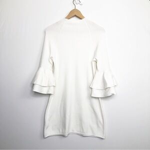 Anthropologie ivory knit double ruffle sleeve winter white dress with mock neck.