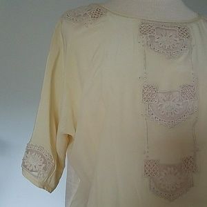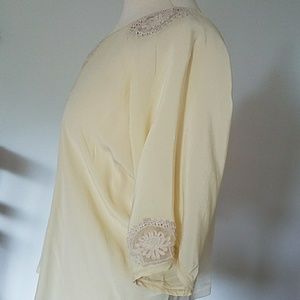 NWOT beautiful ivory blouse with lace details on front and sleeves. Blouse is slightly see-through, you must wear something underneath. Never worn.