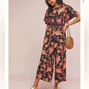Anthropologie mauve Belted Botanical Jumpsuit size 4