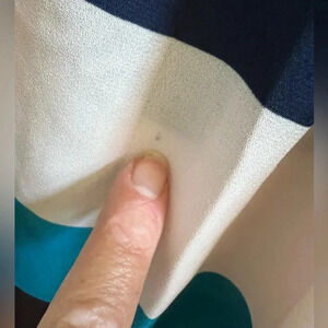 There is a tiny mark on the front which I point to in a pic. Hardly noticeable but I scrutinize all my clothes to point out any potential flaws before I sell them