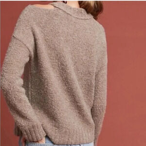 Anthropologie moth tan fuzzy cold shoulder sweater
