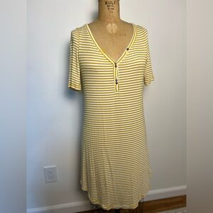Adorable and comfy Anthropologie mustard yellow and white ribbed stretchy dress with little button details!!