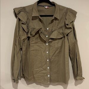 Anthropologie olive denim ruffle button down