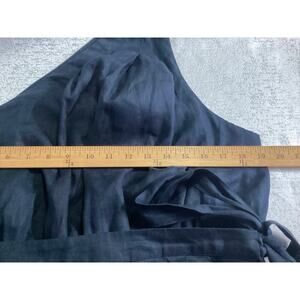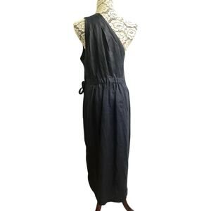 Anthropologie one shoulder linen wrap preppy dress size 16 black