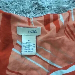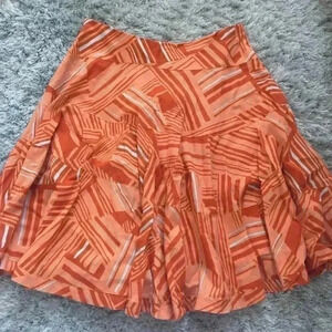 Size 6 Odille from Anthropologie orange midi skirt. Beautiful orange and white pattern throughout with midi flared skirt style. Excellent used condition