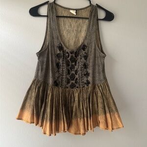 Anthropologie peasant Embellished Gray and Brown Peplum Tank Top