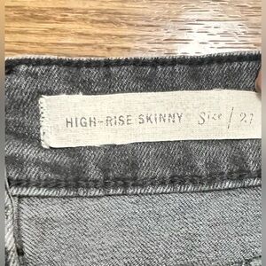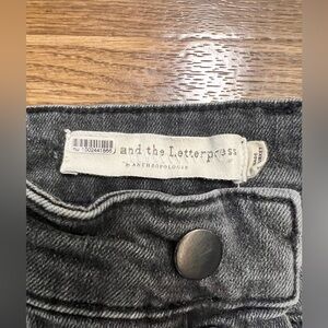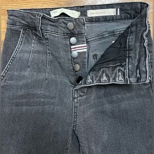 Anthropologie pilcro and the Letterpress High rise button fly pleated skinny ankle jeans. Dark Gray/ black