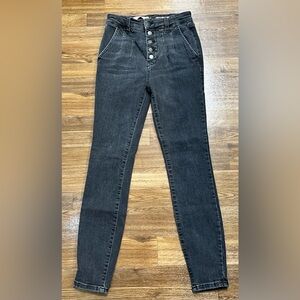 Anthropologie pilcro high rise pleated button fly black skinny ankle jeans 27
