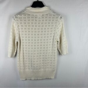 Elegant cream open knit sweater by anthropologie. Features a classic Peter Pan neck. Perfect for transition. Size M