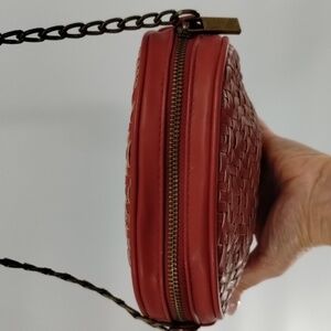 Anthropologie red rust weave round faux vegan leather crossbody with chain strap
