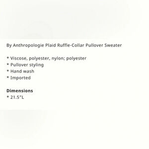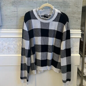 Anthropologie ruffle collar pullover sweater large black white plaid check