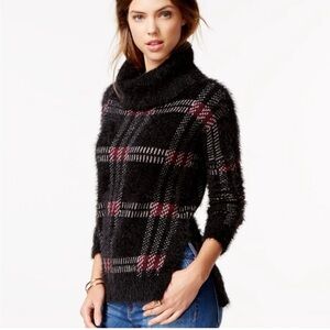 Anthropologie Sanctuary eyelash fuzzy cowl neck sweater with plaid design. Super soft. Slits on the sides.