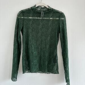 Anthropologie Sheer Green Lace Long Sleeve – Size XS