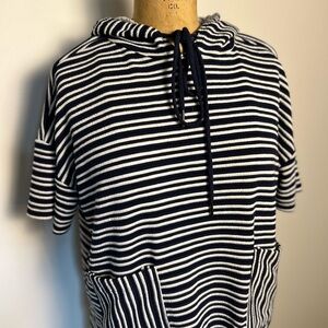 Anthropologie short sleeve hoodie XXS striped pullover with pockets