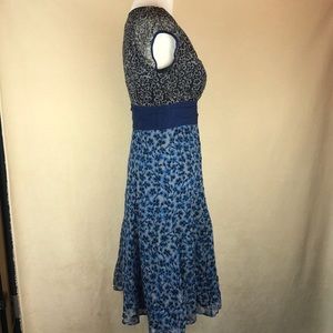Every detail is flattering on this beautifully made dress from Anthropologie. ✔️100% silk exterior ✔️Lined ✔️Sheer sleeves ✔️Darter bosom ✔️Ruched sash at waist ✔️Flowing skirt ✔️Concealed side zip closure. Excellent condition; there is a small stain pattern on the inside back, not visible when worn.