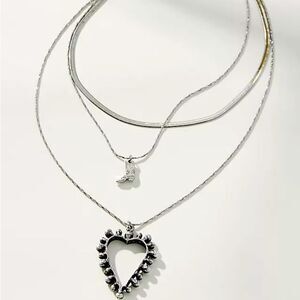 Elegant silver necklace set featuring a heart and boot charm by Anthropologie. Featuring 3 layered chains. Lobster clasp closure. L 18” NWT.