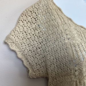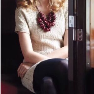 Give your winter wardrobe a boost with this oh-so cute short-sleeve sweater dress from sparrow by Anthropologie. So versatile! This adorable sweater dress in color sand has crocheted details and can be worn solo with boots or like a tunic over leggings or jeans. The neutral beige / cream / tan goes with everything. How cute are those pointelle details? The overall length (shoulder to hem) is approx 32”. Like new condition. Worn one time. No flaws. 85% wool. 15% linen. Dry clean.