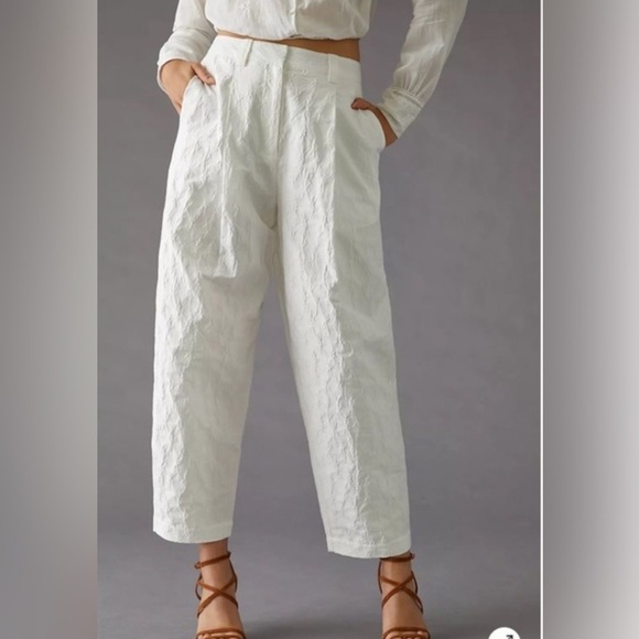 Anthropologie stella nova Jill white texted barrel leg pants Size 6