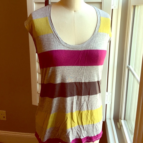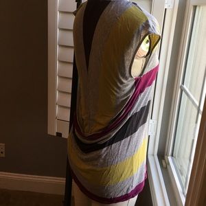 Super cute tee with not your average silhouette. Scoop neck, with cowl like design in the back. By Louise et Charlotte. Length is 24" in the front, 28" in the back. GUC- slight pilling under the arms and on the back, and 3 tiny holes along the bottom (shown) that could probably be stitched and be unnoticeable. Price reflects.