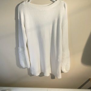 Anthropologie sweater Size XL 41% viscose 38% nylon ribbed sleeve fuzzy bell sleeve at bottom ribbed bottom crew neck warm and cozy excellent pre used condition D