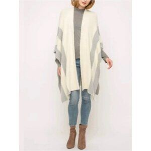 Wrap yourself in the effortless sophistication of this Anthropologie Saturday Sunday striped sweater cardigan. The versatile one-size design ensures a cozy fit for all, while the soft acrylic blend offers comfort that's both warm and forgiving. Its chic 3/4 sleeves and V-neck shape a silhouette that's perfect for layering over your favorite ensembles. The bohemian spirit of this piece shines through with its eye-catching striped pattern and an oversized feel that's incredibly on-trend. Suited for a variety of occasions, from business meetings to casual outings, or even a cocktail party, this open-front cardigan is a stylish addition to any wardrobe. Its all-season weight makes it an ideal choice for year-round sophistication.