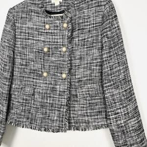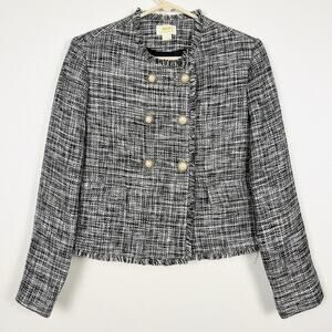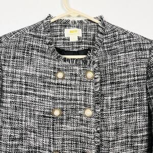 Anthropologie sz 4 Tweed Double-Breasted Black/White Pearl Button Blazer Jacket
