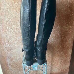 Anthropologie tall women's black leather riding style boots EUC, 9M