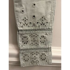 Anthropologie the Wanderer Boho cropped pants eyelet cotton sage green 27