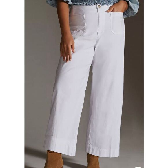 Anthropologie the Colette white crop wide leg jeans size 34p