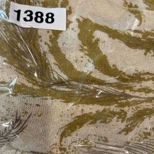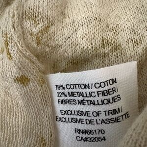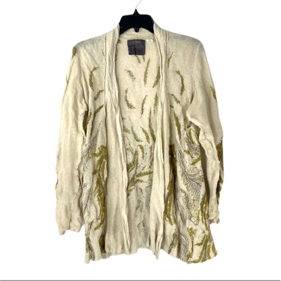 Anthropologie thin knit ecru gold metallic feather print open cardigan sweater M