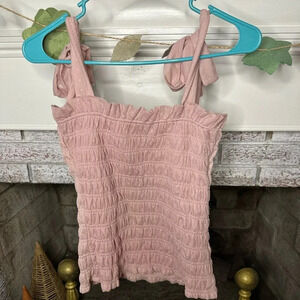Anthropologie tie shoulder smocked bodice Swiss dot top rose color size small