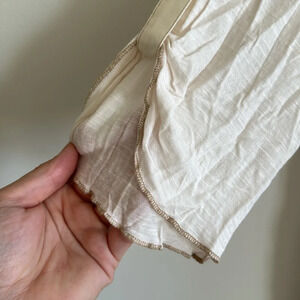 Anthropologie tiny cream button down tunic top with gold metallic embroidery XL
