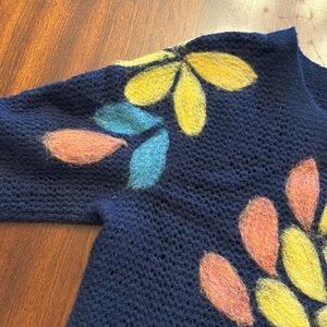 Anthropologie troubadour 100% Wool Bloom Navy Sweater