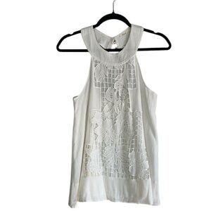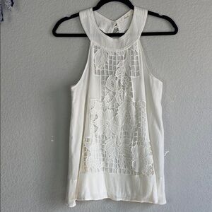Anthropologie floreat blouse. Solid white. Lace detailing. High neck, high back, cotton