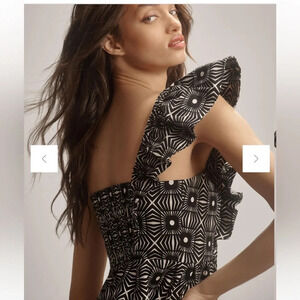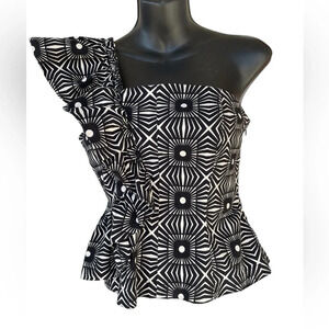 Anthropologie women’s one shoulder ruffle top black/white size small NWT