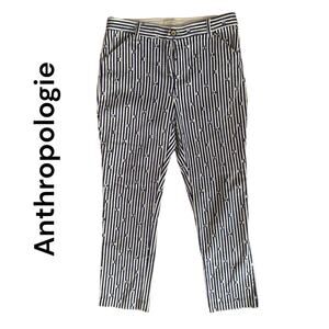 Anthropologie womens size 10 medium essential slim blue white stripe trouser pan