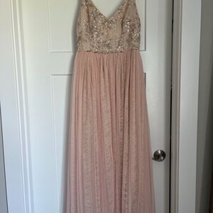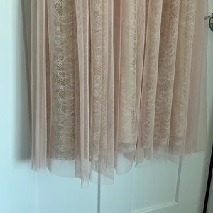 Hemmed to 55.5” long. I’m 5’3” and wore sandals with a very small heel.