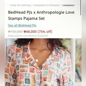 Anthropologie x BedHead Live Stamps Pajama Bottoms Size XS NWT