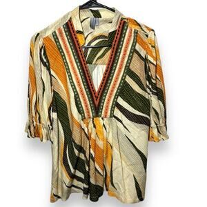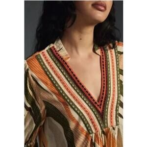 Anthropologie x Bl-nk London BohoV-Neck Blouse S Geometric Long Sleeve Viscose